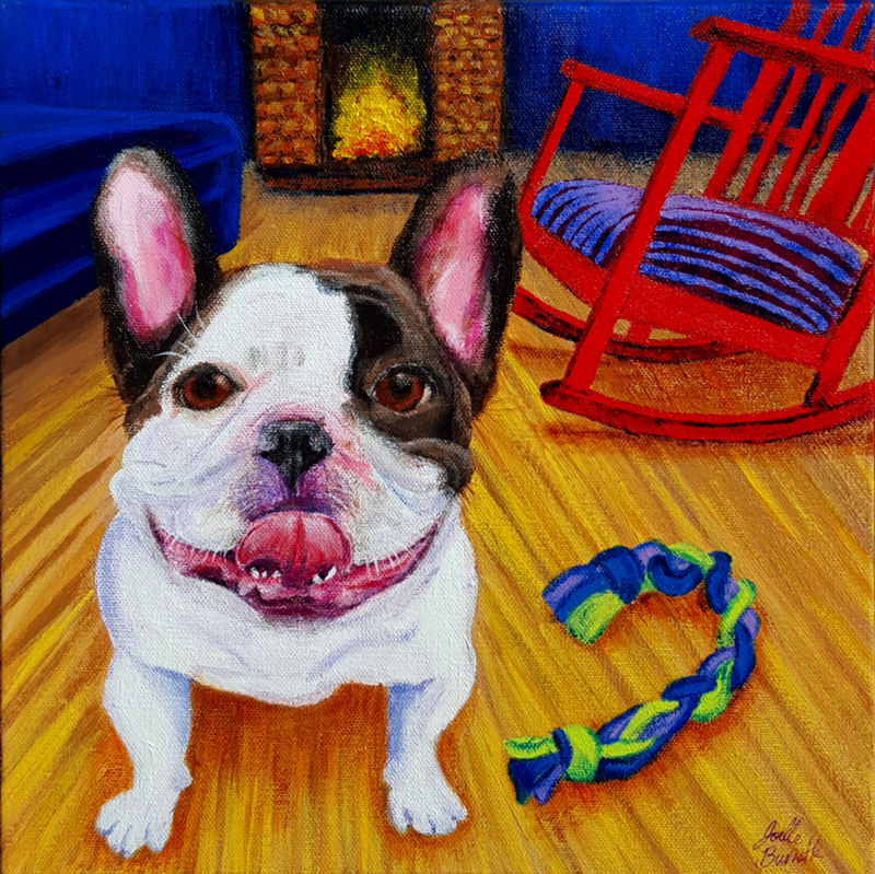 Dog-FrenchBulldog-living-room_2015_110315x Published March 12, 2016 at 800 × 799 in Joelle’s Dog Series ← Previous Next → SOLD: “French Bulldog and Rocking Chair” Acrylics on Canvas 12″H x 12″W x 1.5″D Share this:Tweet Click to email a link to a friend (Opens in new window) Email Click to share on Print & PDF (Opens in new window) Print & PDF MoreShare on Tumblr Click to share on Reddit (Opens in new window) Reddit Like Loading...